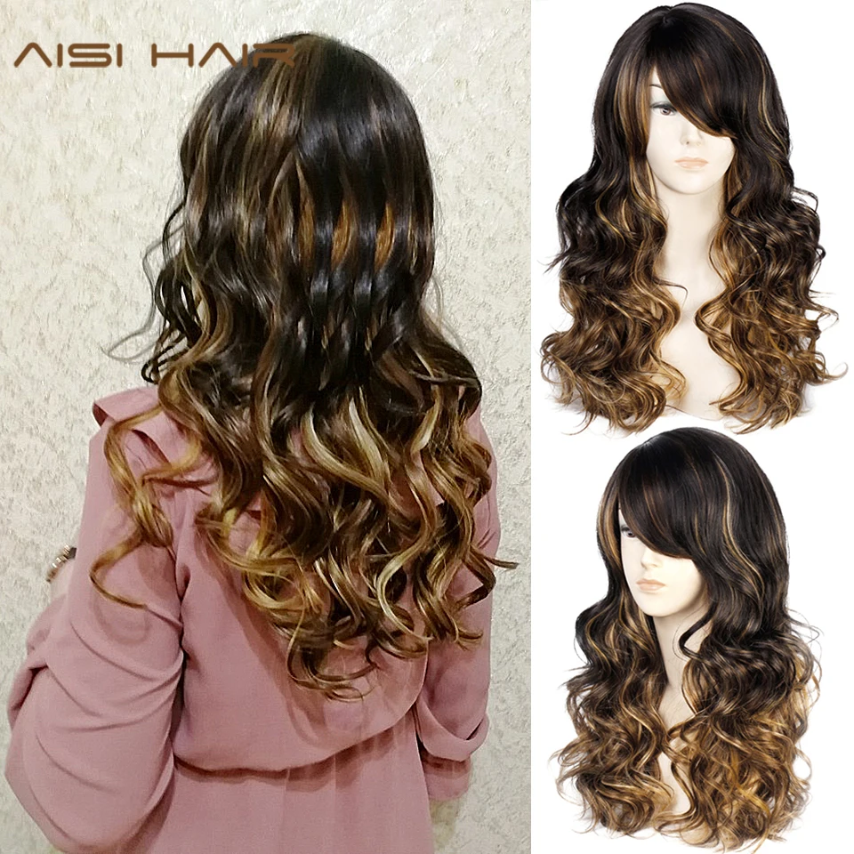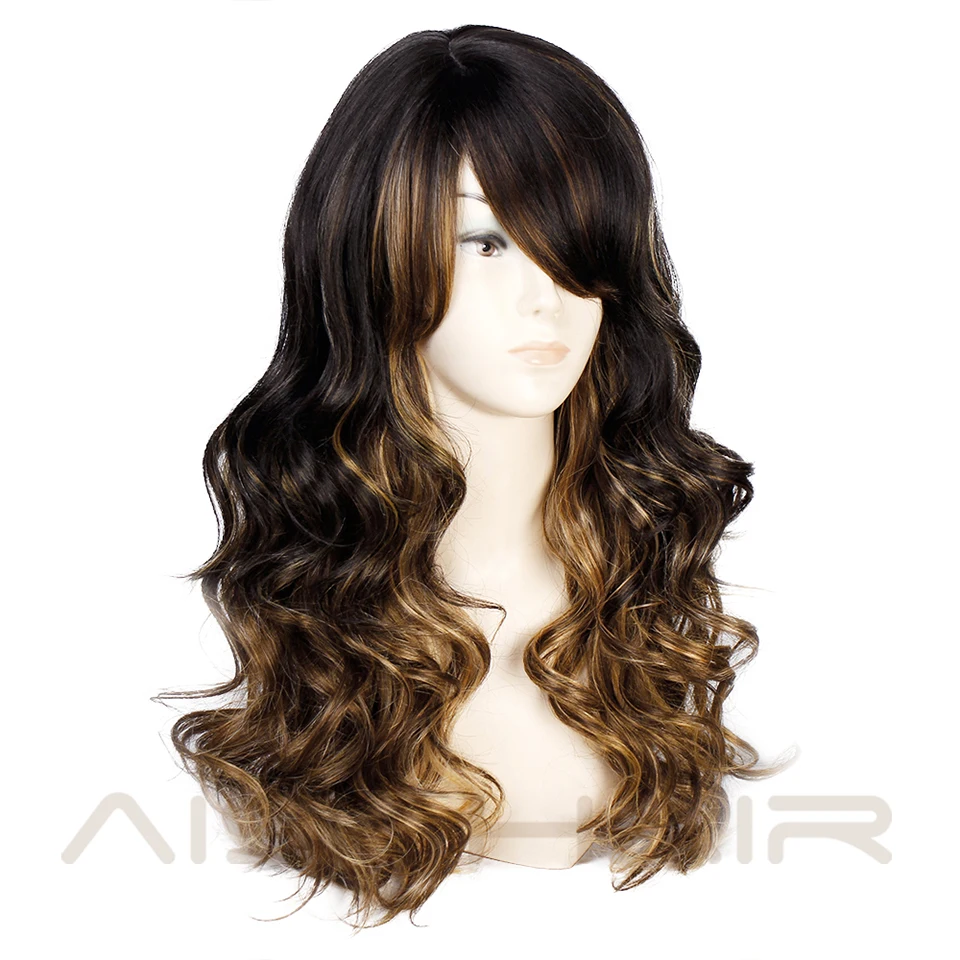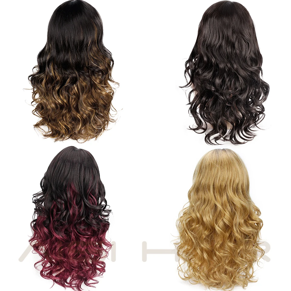 BEST Long Lavy Black Red Hair Mix Color Women Wigs Heat Resistant Synthetic wigs with bangs for Women Af