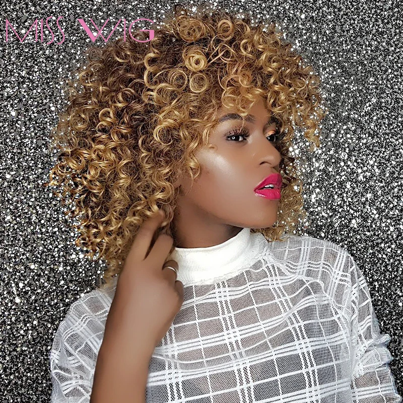 Review MISS WIG 16Inches Long Afro Kinky Curly Wigs for Black Women Blonde Mixed Brown Synthetic Wigs Afri