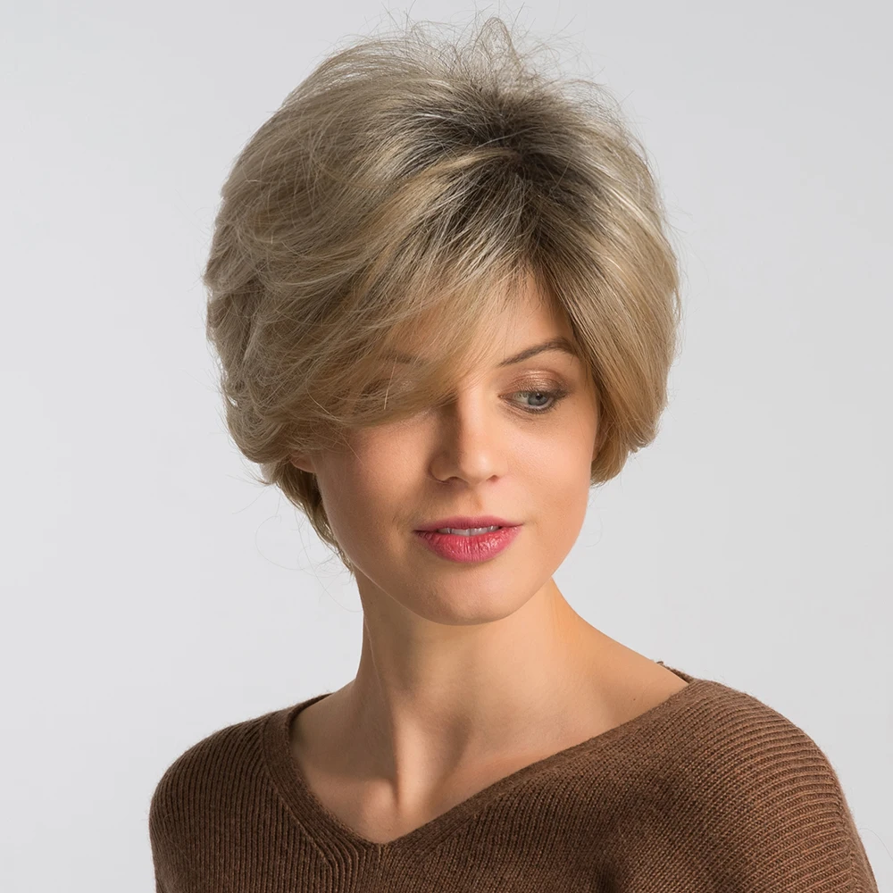 Best Seller Blonde Unicorn 8 Inch Synthetic Pixie Cut Women Wigs with Natural Bang Fluffy Straight 50% Human Ha