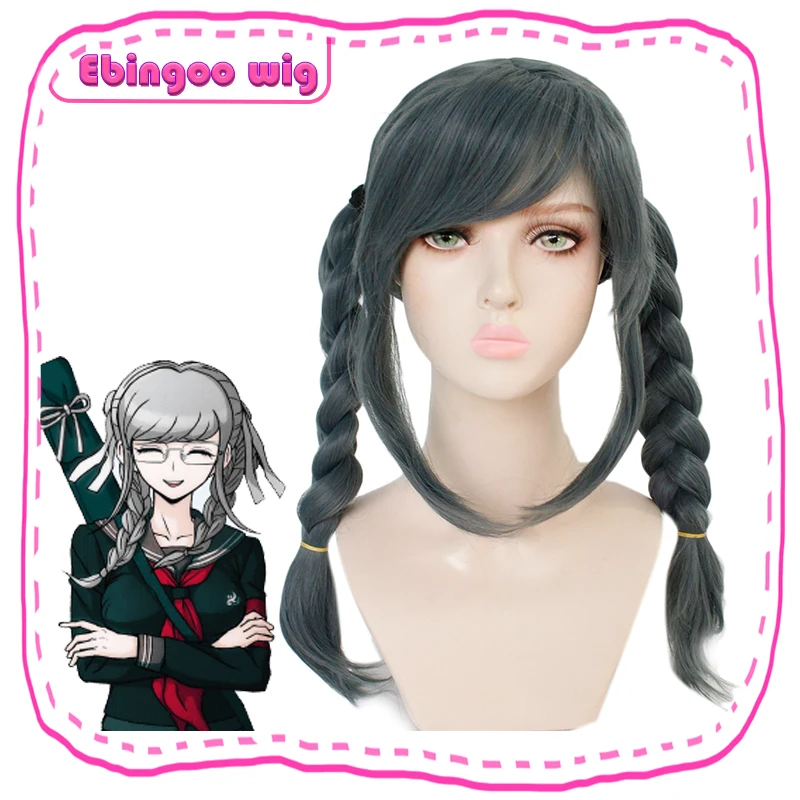 Ebingoo Cap+Danganronpa Dangan-ronpa Peko Pekoyama Double Braided Dark Grey Synthetic Cosplay Wig f
