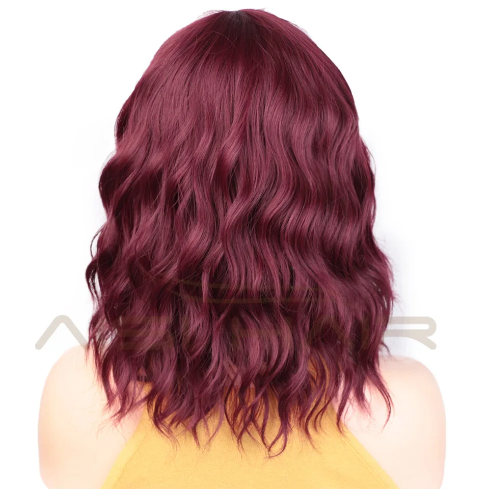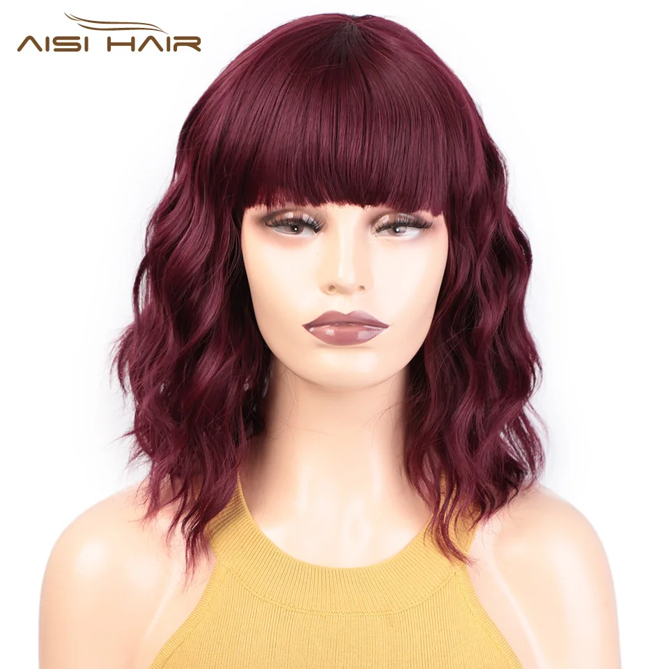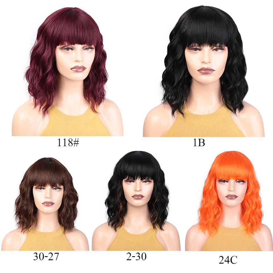 I's a wig Short Synthetic Red Water wave Hair Wigs with Bangs for Women False Hair Black Brown Cosp