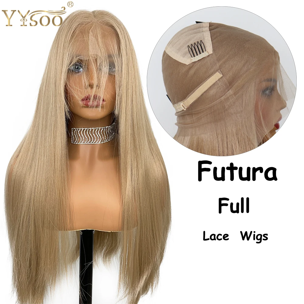 YYsoo Synthetic Full Lace Wigs Long Straight Blonde Glueless Wig Heat Resistant Fiber Full Hand Tie