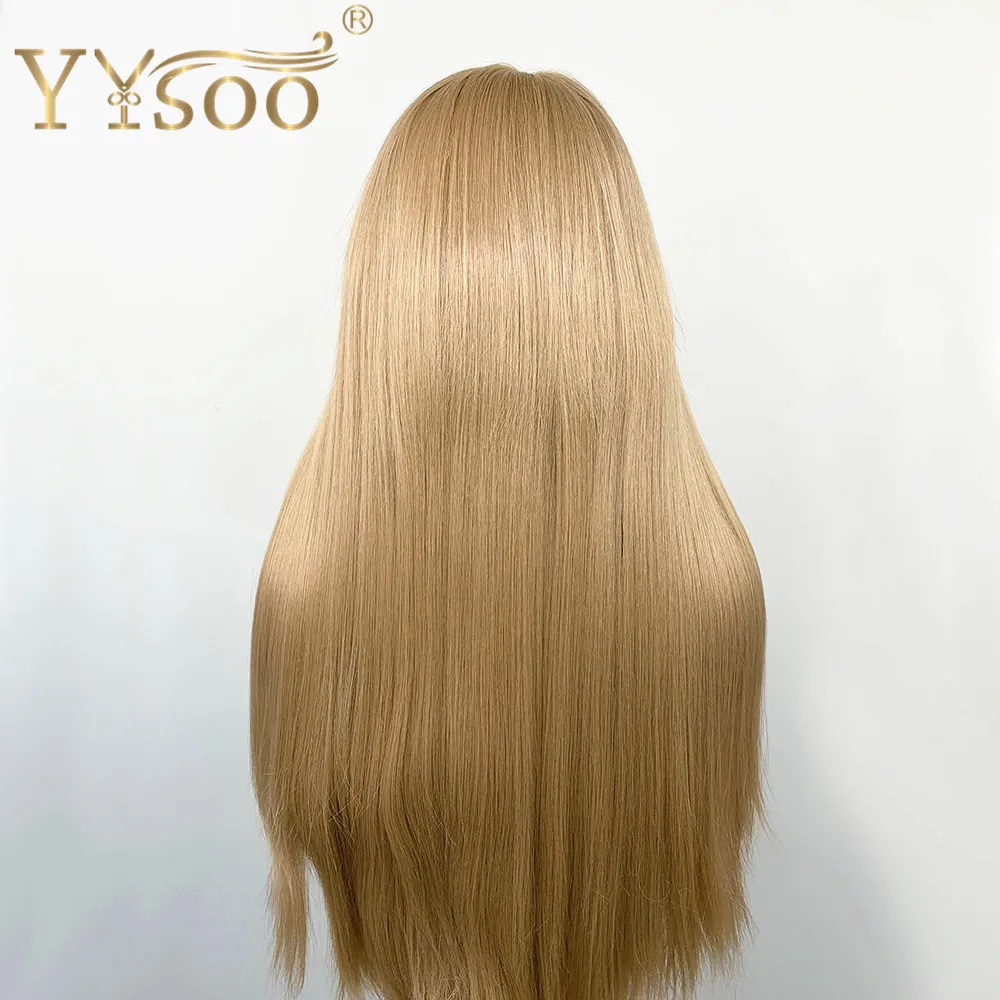 HOT Sale YYsoo Synthetic Full Lace Wigs Long Straight Blonde Glueless Wig Heat Resistant Fiber Full Hand Tie