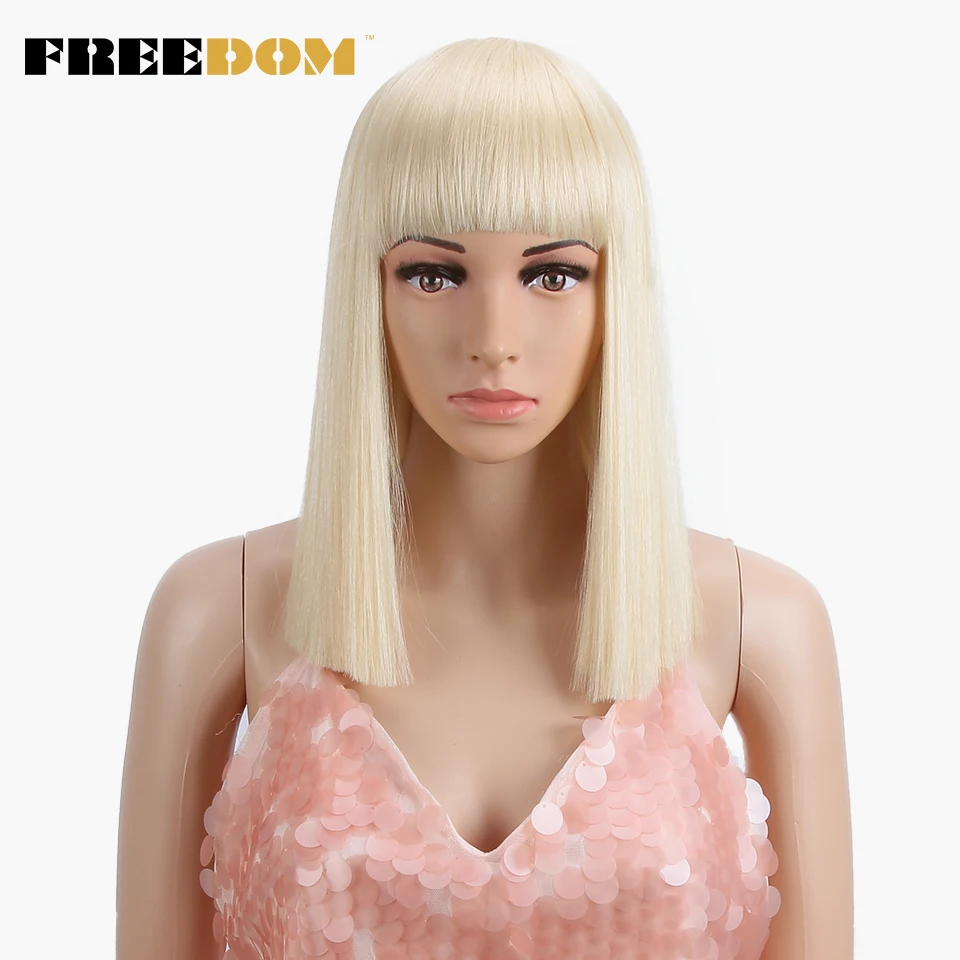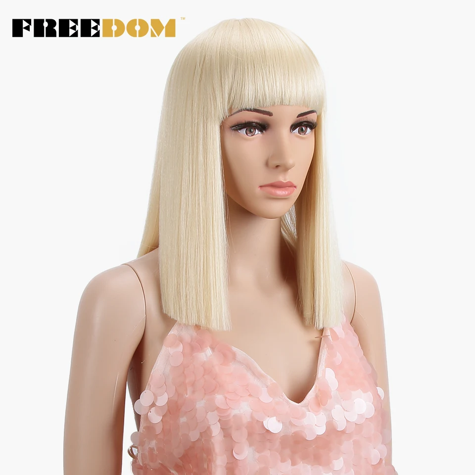 HIGH QUALITY FREEDOM Womens Synthetic Bob Wigs 12 Inch Blonde Wig Short Straight Hair Wig Heat Resistant 613 Red