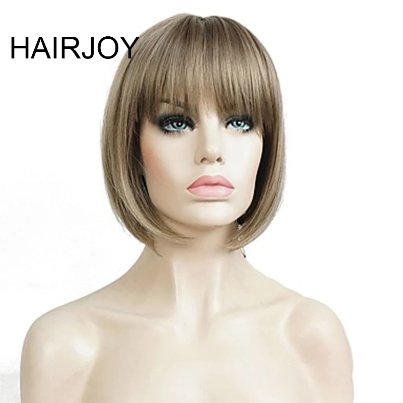 REVIEW TOP SELLER HAIRJOY Women Synthetic Hair Wig Short Straight Brown Bob Highlighted Wigs